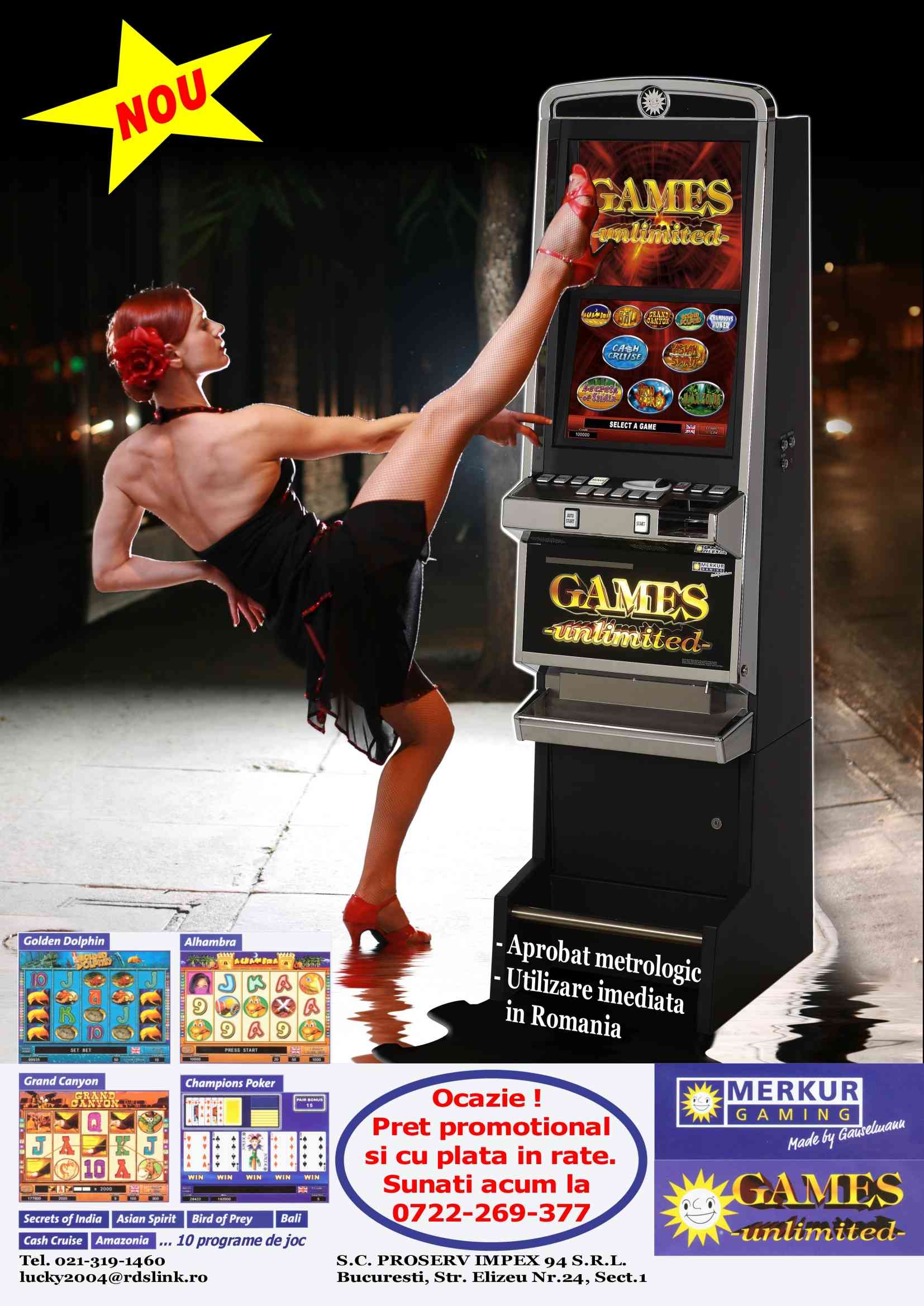 ööö Promotia PROSERV IMPEX 94 ööö Va oferim la un pret promotional noua masina de joc multiprogram GAMES UNLIMITED a firmei MERKUR GAMING GERMANIA.